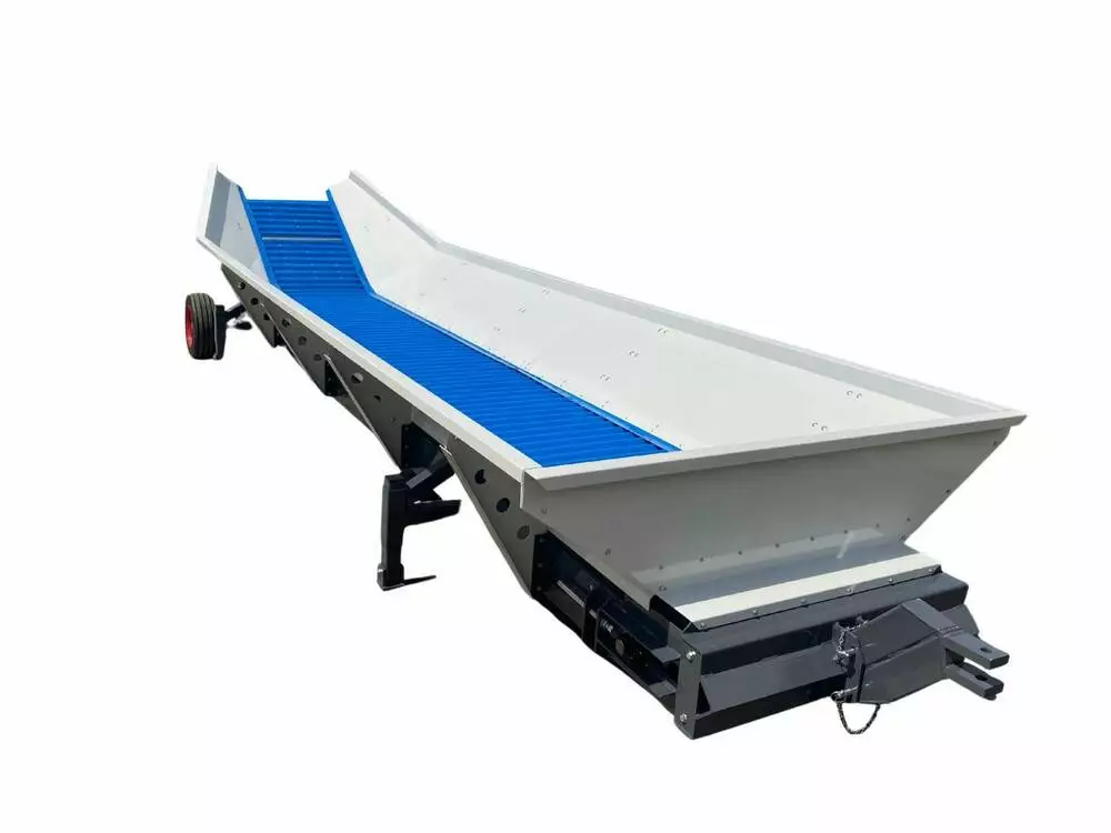 Розвантажувальний бункер KRD призначений для розвантаження коренеплодів та овочів із причепів з заднім та бічним перекиданням. Він оснащений унікальним міцним конвеєром (сталеві секції та ПВХ-стрічка), що гарантує тривалу та безвідмовну роботу.