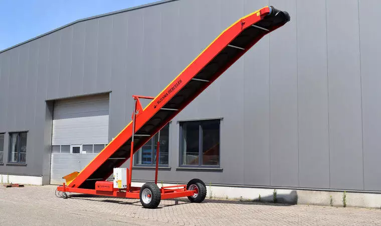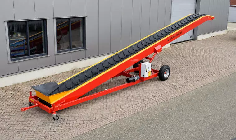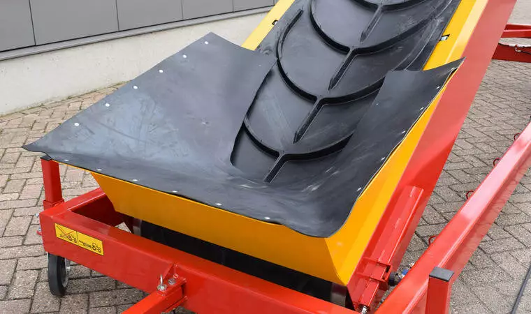 Продукт транспортується вгору плавно та з високою пропускною здатністю через ремінь з високим шевроном у формі корита. Зверху ремінь приводиться в рух барабанним двигуном. Верхній привід запобігає ковзанню ременя, забезпечує оптимальний контроль ременя, а також зменшує натяг ременя. Це зменшує знос стрічки та роликів, що автоматично призводить до меншого обслуговування.