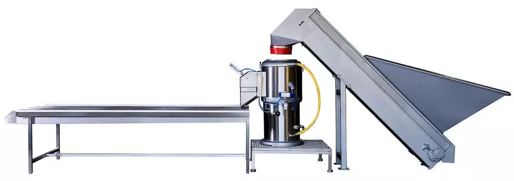 В автоматичному режимі елеваторм задана порція продукту завантажується в камеру чистки, та заливається необхідний обєм води через автоматично керований клапан, після чого овочі очищаються з заданим часом. Після закінчення циклу чистки відпрацьована вода зливається, а очищений продукт вивантажується на інспекційний стіл дочистки.