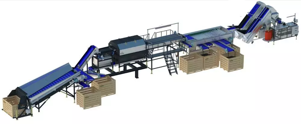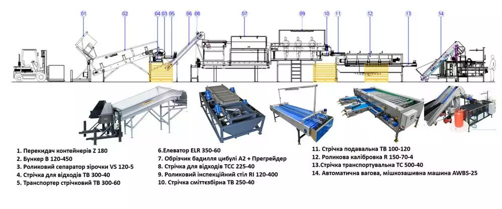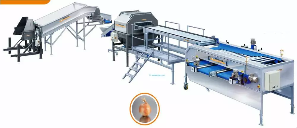 Лінія обрізки бадилля цибулі зподальшою калібровкою.