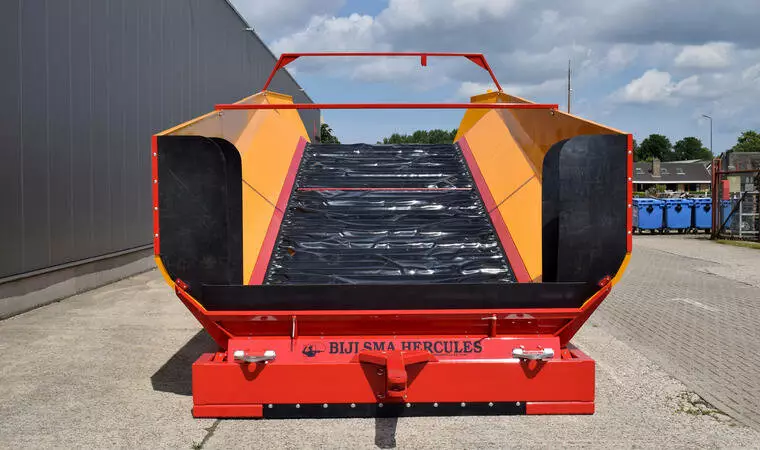 Конструкція, що згинається, на розвантажувальній стороні розвантажувальної підлоги забезпечує оптимальний перехід між бункером і очищувачем продукту з мынымальни перепадом висоти. Донний транспортер складається з двох посилених роликових ланцюгів із встановленими між ними поперечними планками. Завдяки тому, що тканина з поліестеру та нейлону закріплена на планках із надлишком довжини, на донному транспортеры утворюються "кишені" що запобігають відкочуванню продукту. Розвантажувальний транспортер приводиться в дію електродвигуном, встановленим безпосередньо на редукторі. Це призводить до кращої передачі потужності. Швидкість розвантажувальної підлоги плавно регулюється. За бажанням система може бути розширена за рахунок автоматичного регулювання продуктивності. Цей блок управління підключений до перетворювача частоти і складається з датчика ультразвукового вимірювання товщини шару продукту на стрічці і ПЛК.