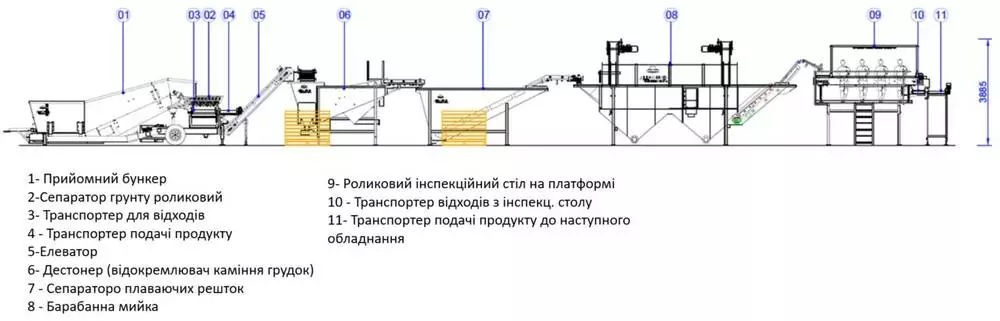 Промислова лінія мийки картоплі